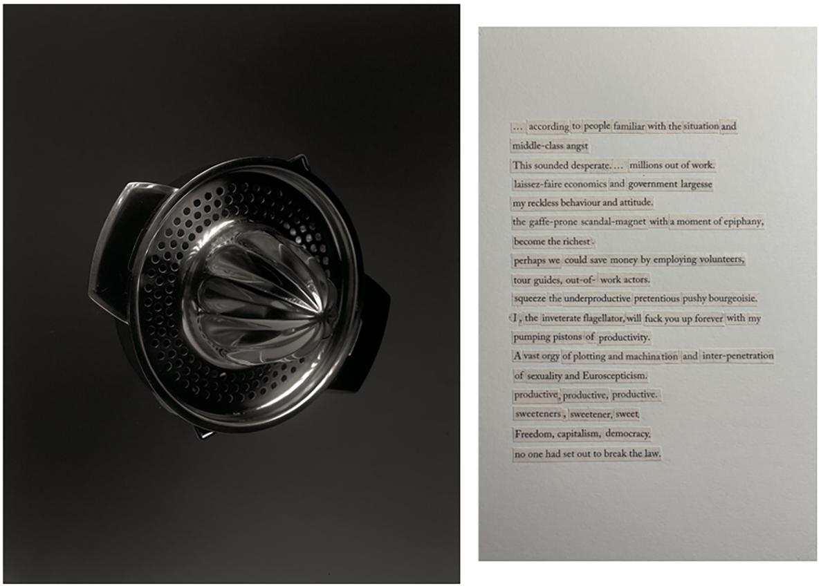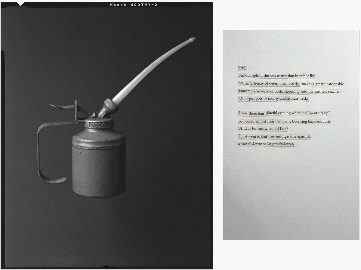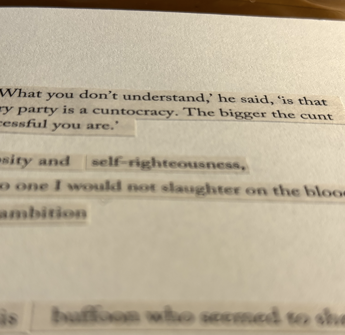 The artist’s view of the rhetoric and deceit in the political world, by re-contextualising memoirs, newspaper and magazine articles, from Brexit and Covid through to the expenses and sex scandals.